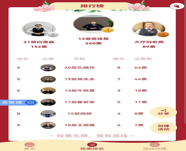 国投大厦客户服务部在日常工作中,通过组织开展文明礼仪、业务技能专题培训强化素养提升。活动启动后,客服工作人员掀起了争先创优的创建热潮,广大客户积极参与,为心目中的“服务标兵”,投上了自己宝贵的一票。