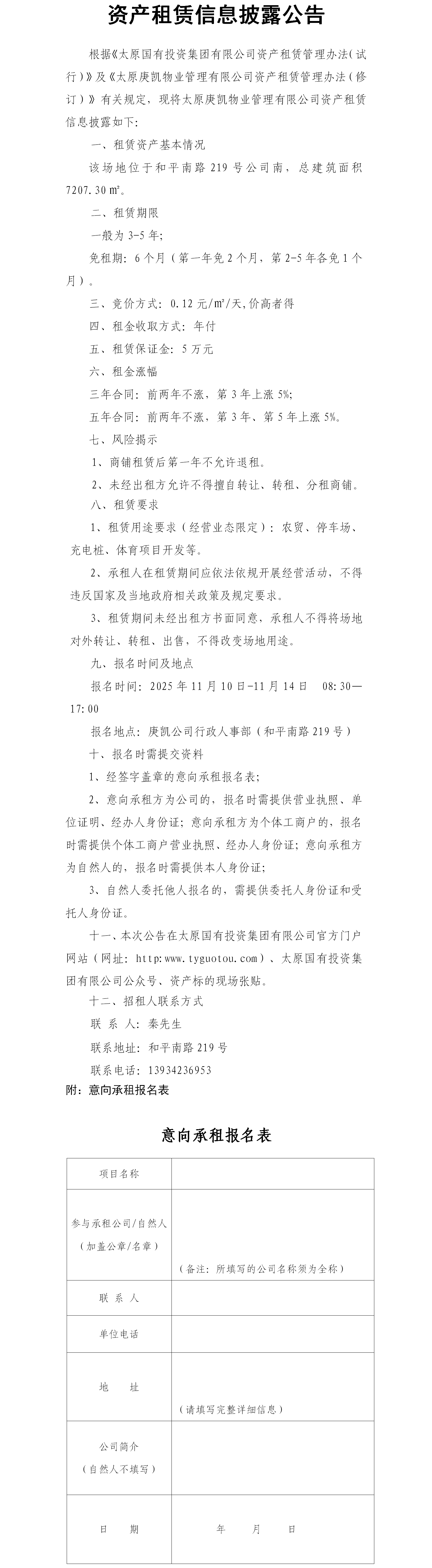 资产租赁信息披露公告